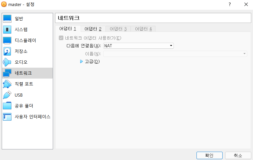 네트워크 환경에 관계없이 각VM마다 고정IP 할당하고 쓸거기 때문에 NAT, 호스트 전용 어댑터로 2개 추가