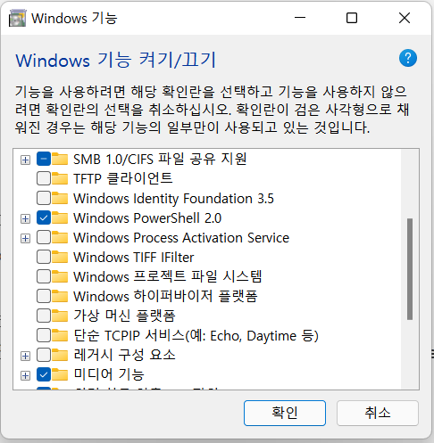 검색으로 윈도우즈 기능 연 다음 가상 머신 플랫폼 체크 해제 후 확인 -> 재부팅